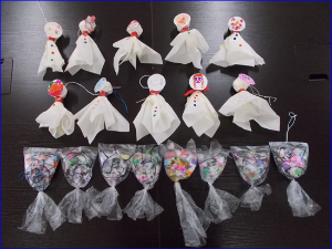 今月のアートデーはもうすぐ始まる梅雨の準備として、2種類のてるてる坊主を作りました。