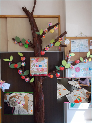 今月のアートデーは、ぱわふるに突如誕生したぱわふるツリーにちぎり絵